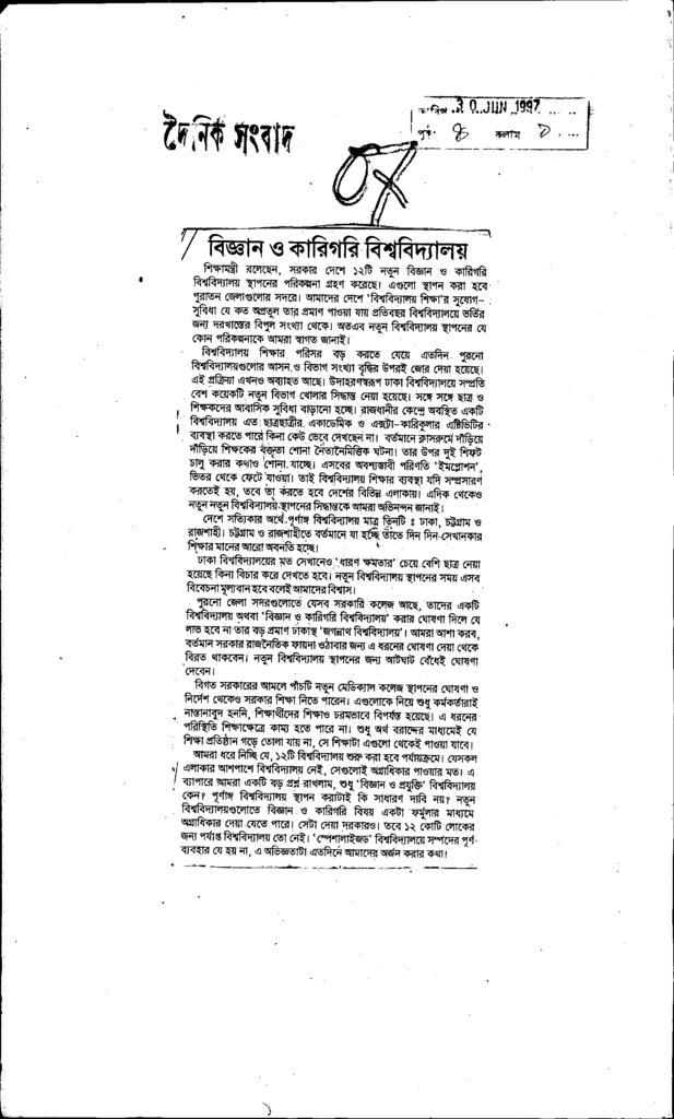 বিজ্ঞান ও কারিগরি বিশ্ববিদ্যালয় Published on Newspaper দৈনিক সংবাদ Category Technical and Vocational Education Download
