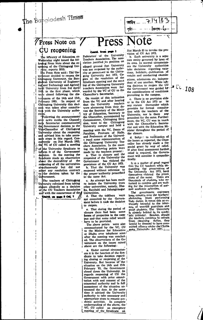Press Note on CU reopening