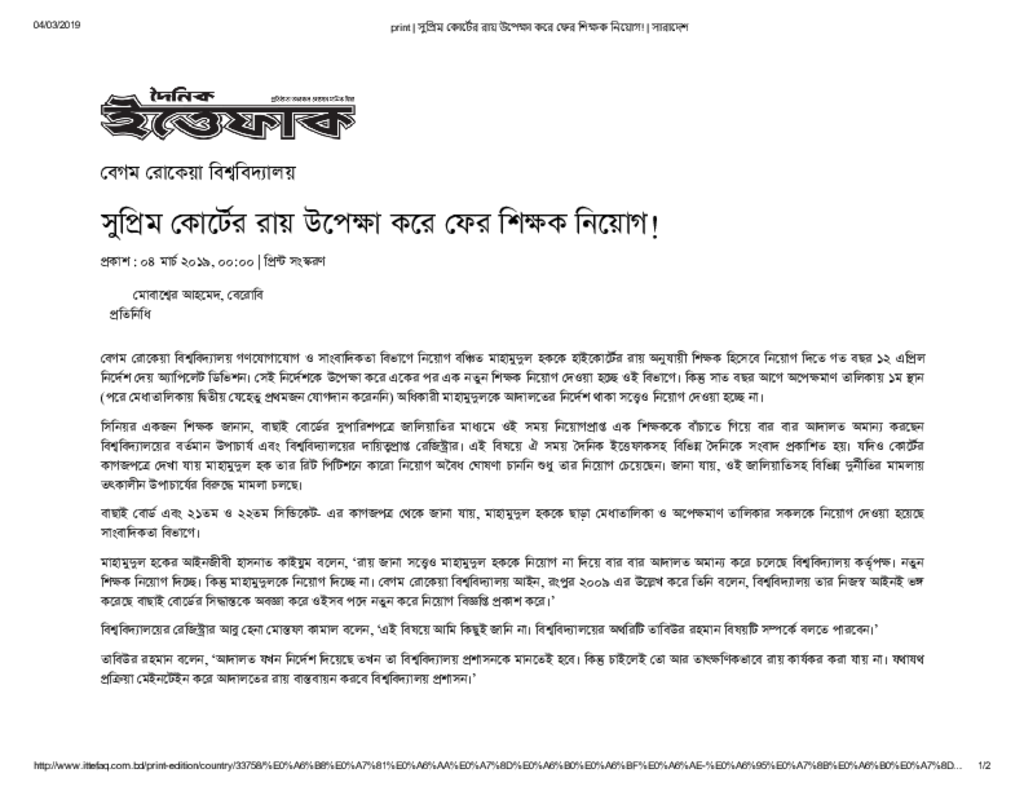 print _ সুপ্রিম কোর্টের রায় উপেক্ষা করে ফের শিক্ষক নিয়োগ! _ সারাদেশ