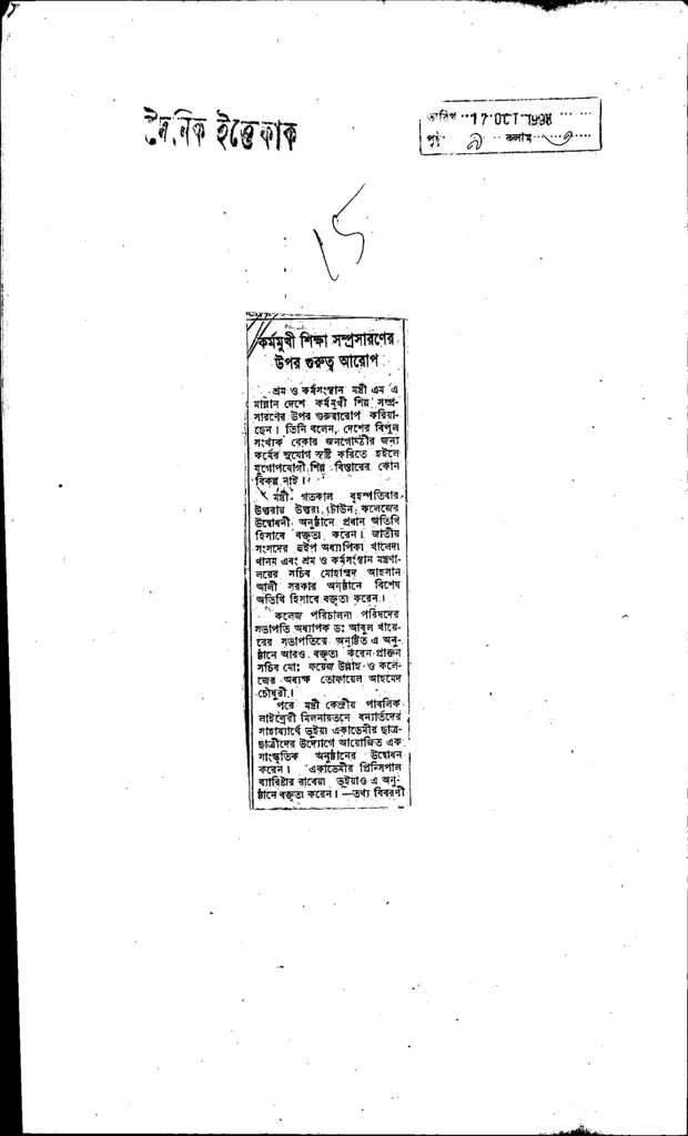 কর্মমুখী শিক্ষ সম্প্রসারণের উপর গুরুত্ব আরোপ Published on Newspaper দৈনিক ইত্তেফাক Category Professional Education Professional Education Others Download
