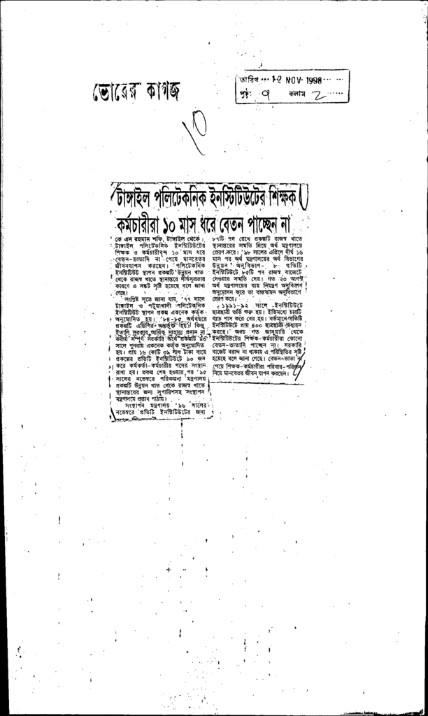 টাঙ্গাইল পলিকেটনিক ইনস্টিটিউটের শিক্ষক কর্মচারীরা ১০ মাস ধরে বেতন পাচ্ছেন না Published on Newspaper দৈনিক ভোরের কাগজ Category Technical and Vocational Education Download