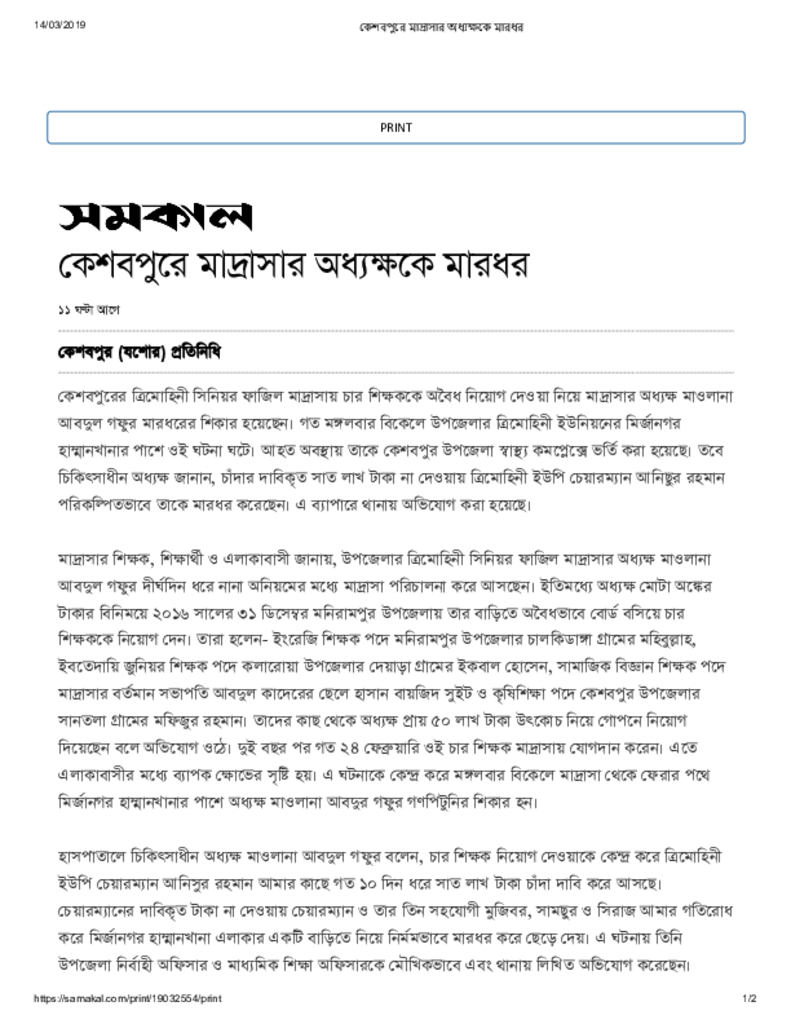 কেশবপুরে মাদ্রাসার অধ্যক্ষকে মারধর