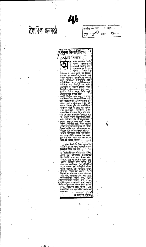 খুলনা বিআইটিতে ক্রেডিট সিস্টেম