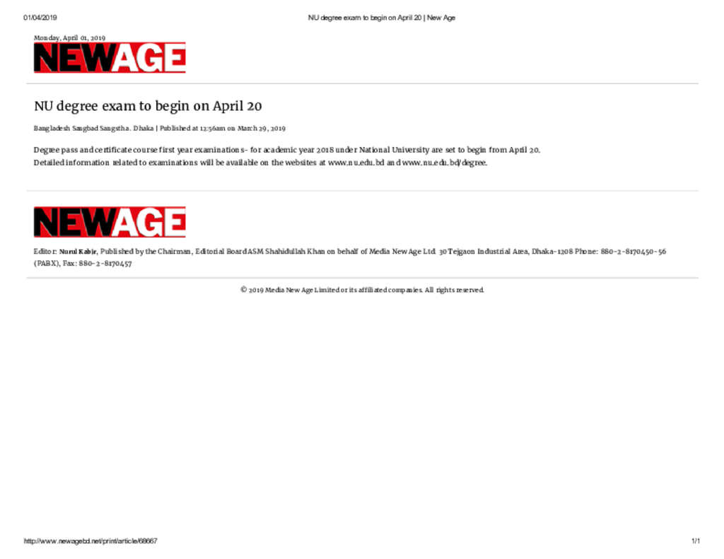 NU degree exam to begin on April 20 _ New Age Published on Newspaper New Age Category Public Examination Public Examination Higher Education Download