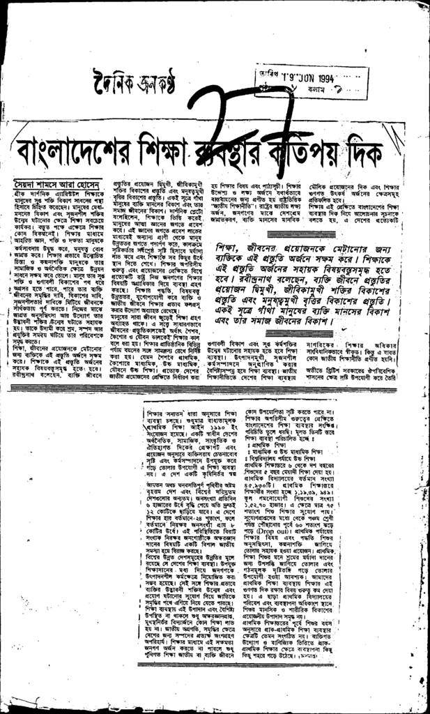বাংলাদেশের শিক্ষা ব্যবস্থার কতিপয় দিক Published on Newspaper দৈনিক জনকণ্ঠ Category General Education Download