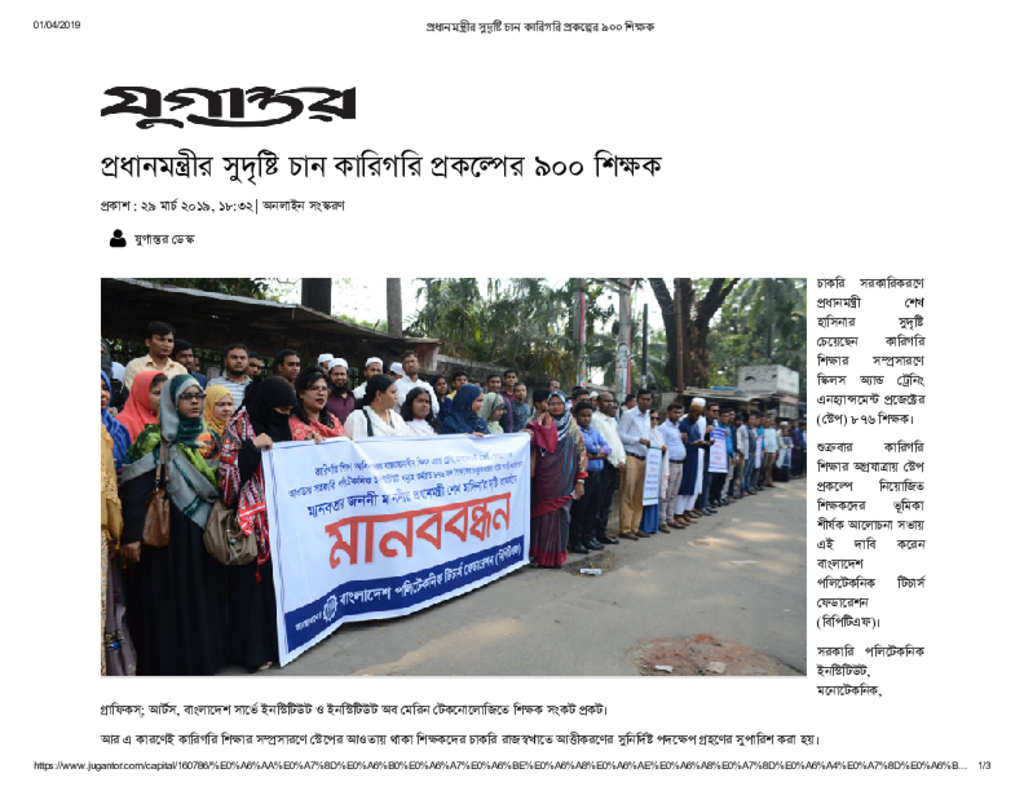 প্রধানমন্ত্রীর সুদৃষ্টি চান কারিগরি প্রকল্পের ৯০০ শিক্ষক Published on Newspaper দৈনিক যুগান্তর Category Technical and Vocational Education Professional Education Others Download