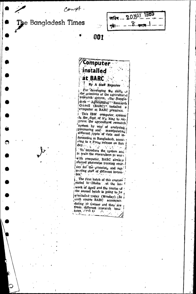 Computer installed at barc Published on Newspaper The Bangladesh Times Category ICT Education Download