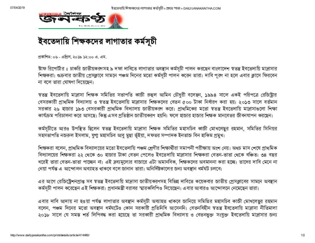 ইবতেদায়ি শিক্ষকদের লাগাতার কর্মসূচী » প্রথম পাতা » DAILYJANAKANTHA Published on Newspaper দৈনিক জনকণ্ঠ Category Madrasah Education Madrasah Education Alia Download