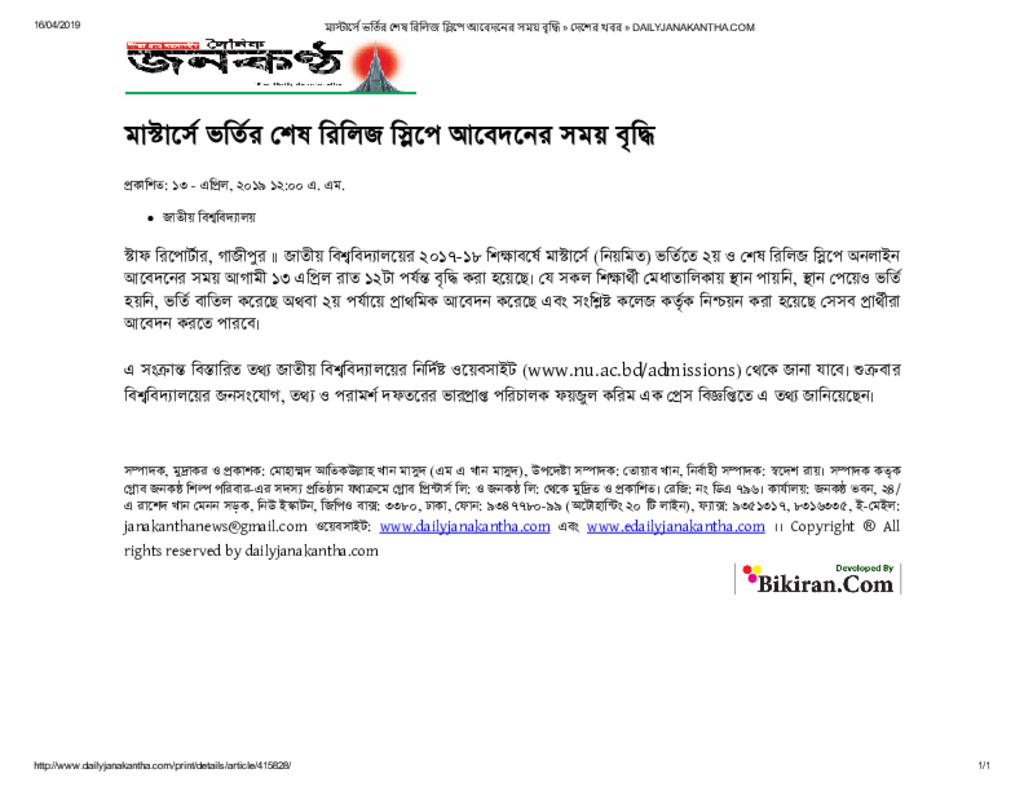 মাস্টার্সে ভর্তির শেষ রিলিজ স্লিপে আবেদনের সময় বৃদ্ধি » দেশের খবর » DAILYJANAKANTHA Published on Newspaper দৈনিক জনকণ্ঠ Category Public Examination Public Examination Higher Education Download