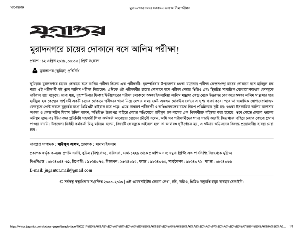 মুরাদনগরে চায়ের দোকানে বসে আলিম পরীক্ষা!
