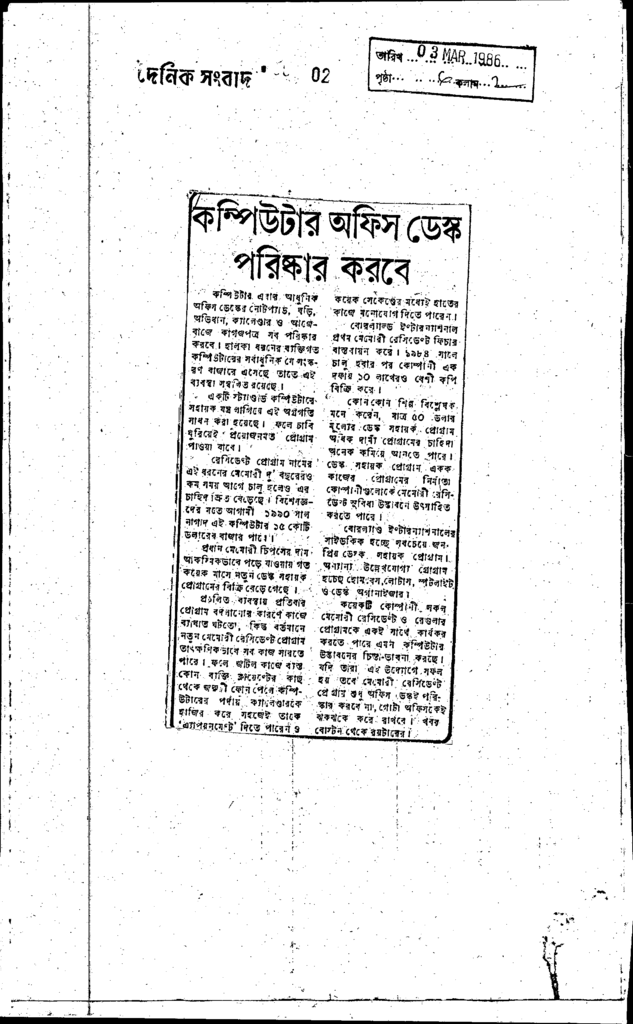 কম্পিউটার অফিস ডেস্ক পরিষ্কার করবে Published on Newspaper দৈনিক সংবাদ Category ICT Education Download