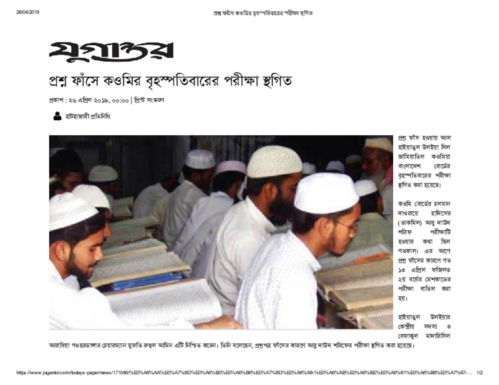 প্রশ্ন ফাঁসে কওমির বৃহস্পতিবারের পরীক্ষা স্থগিত Published on Newspaper দৈনিক যুগান্তর Category Madrasah Education Madrasah Education Qawmi Download