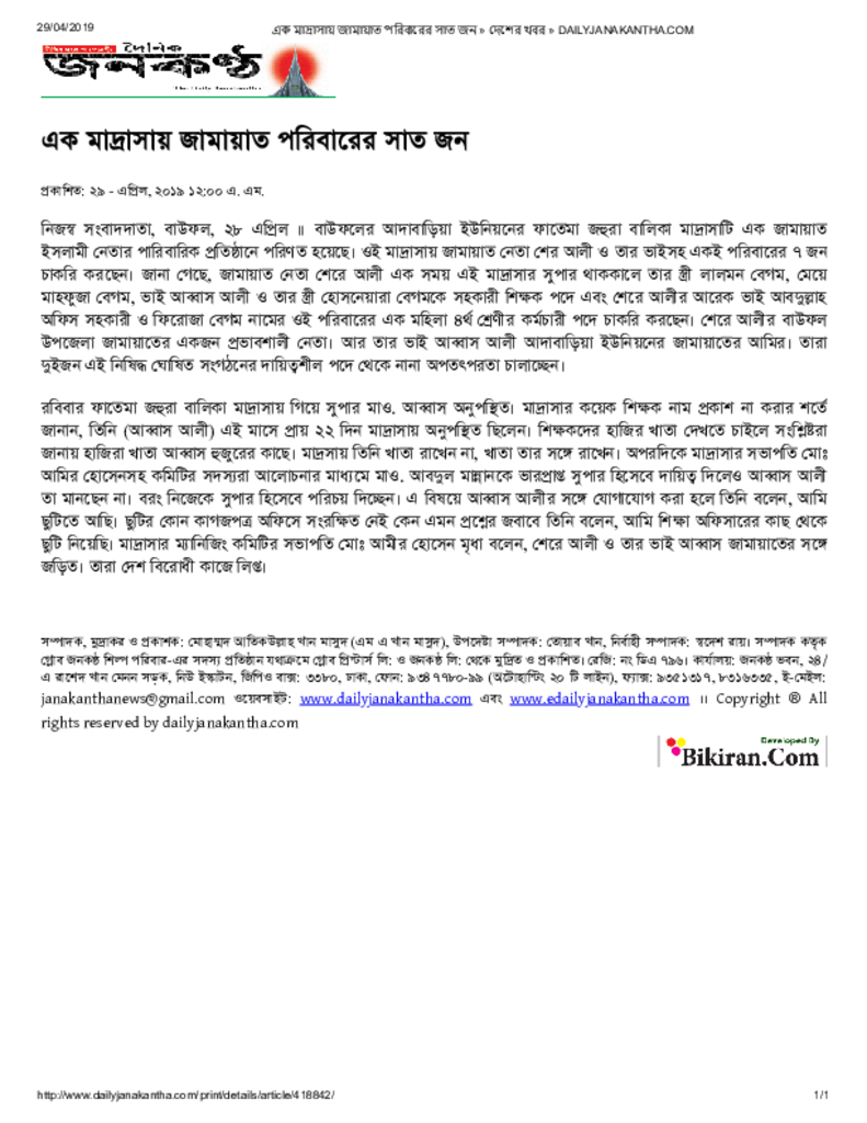 এক মাদ্রাসায় জামায়াত পরিবারের সাত জন » দেশের খবর » DAILYJANAKANTHA.COM Published on Newspaper দৈনিক জনকণ্ঠ Category Madrasah Education Madrasah Education Alia Download