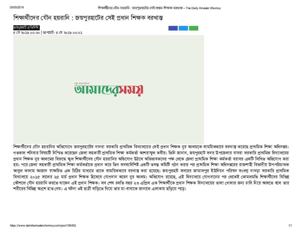 শিক্ষার্থীদের যৌন হয়রানি _ জয়পুরহাটের সেই প্রধান শিক্ষক বরখাস্ত – The Daily Amader Shomoy Published on Newspaper দৈনিক আমাদের সময় Category Others Download