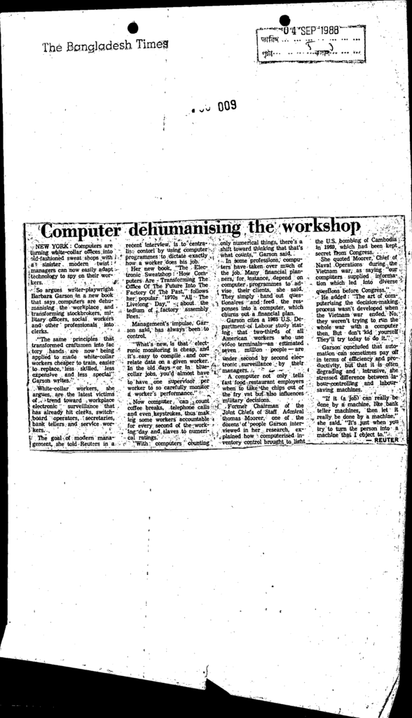 Computer dehumanising the workshop Published on Newspaper The Bangladesh Times Category ICT Education Download