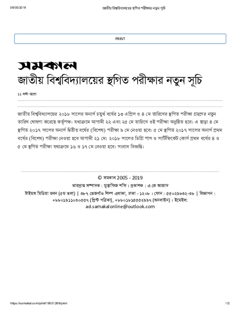 জাতীয় বিশ্ববিদ্যালয়ের স্থগিত পরীক্ষার নতুন সূচি Published on Newspaper দৈনিক সমকাল Category Public Examination Public Examination Honors(Pass) Download