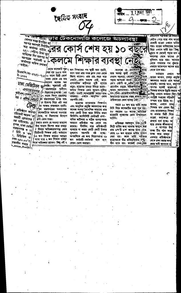কোর্স শেষ হয় ১০ বছরে হাতে-কলমে শিক্ষার ব্যবস্থা নেই Published on Newspaper দৈনিক সংবাদ Category Technical and Vocational Education Download
