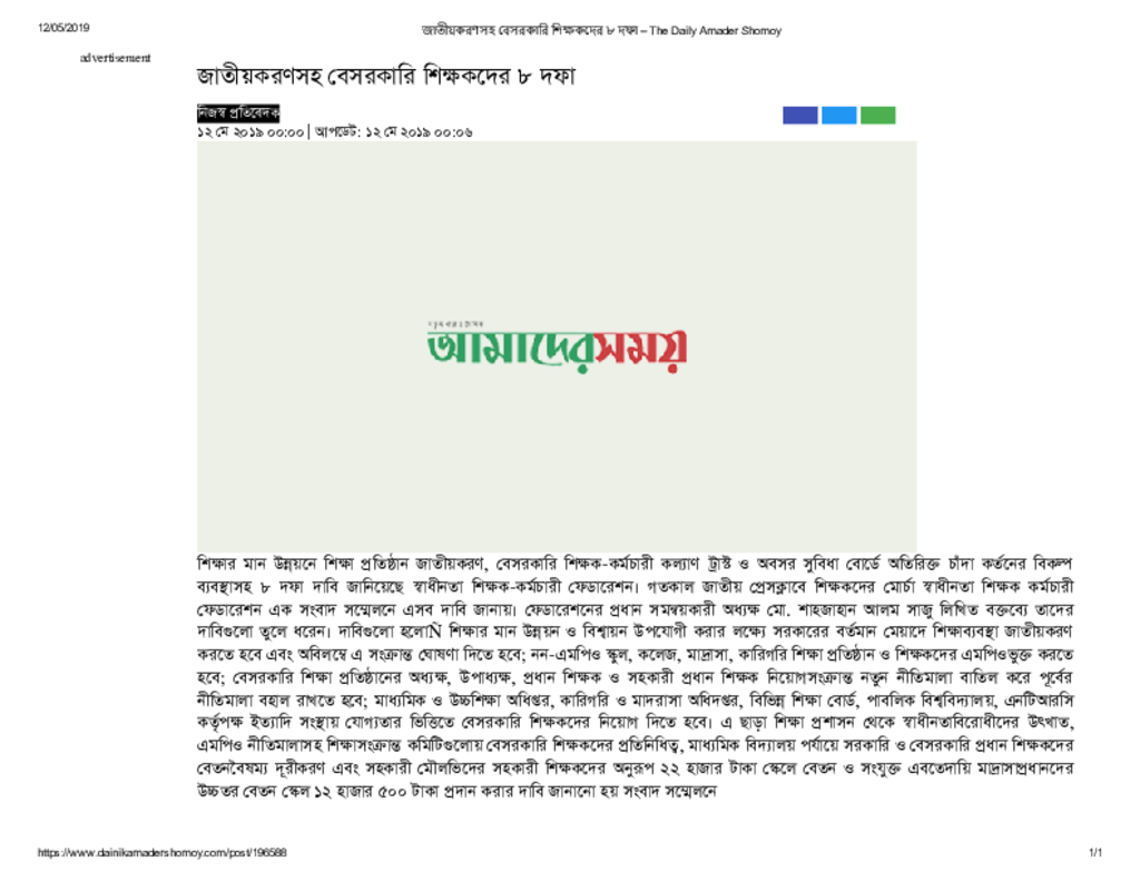 জাতীয়করণসহ বেসরকারি শিক্ষকদের ৮ দফা – The Daily Amader Shomoy Published on Newspaper দৈনিক আমাদের সময় Category Others Download