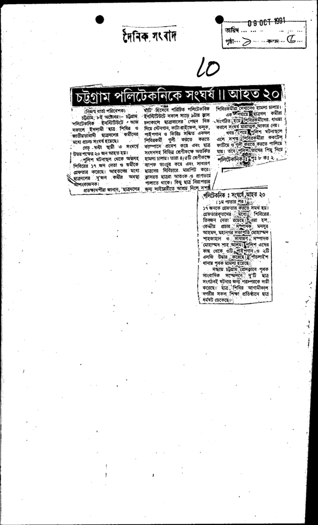 চট্রগ্রাম পলিটেকনিকে সংঘর্ষ ।। আহত ২০ Published on Newspaper দৈনিক সংবাদ Category Technical and Vocational Education Download