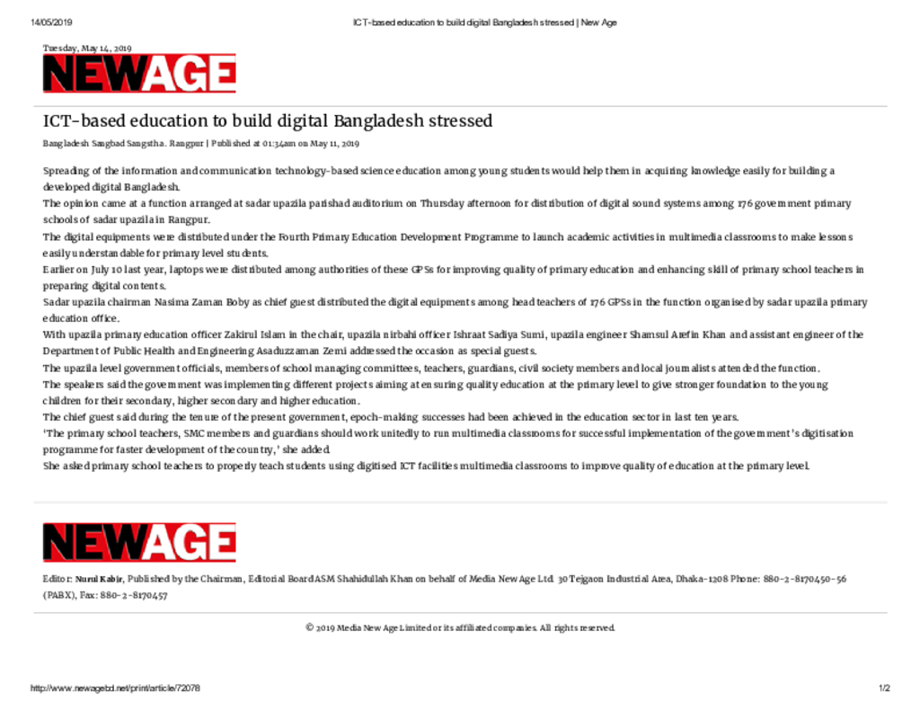 ICT-based education to build digital Bangladesh stressed _ New Age Published on Newspaper New Age Category ICT Education Download