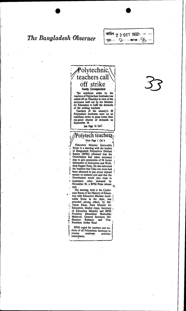 Polytechnic teachers call off strike Published on Newspaper The Bangladesh Observer Category Technical and Vocational Education Download