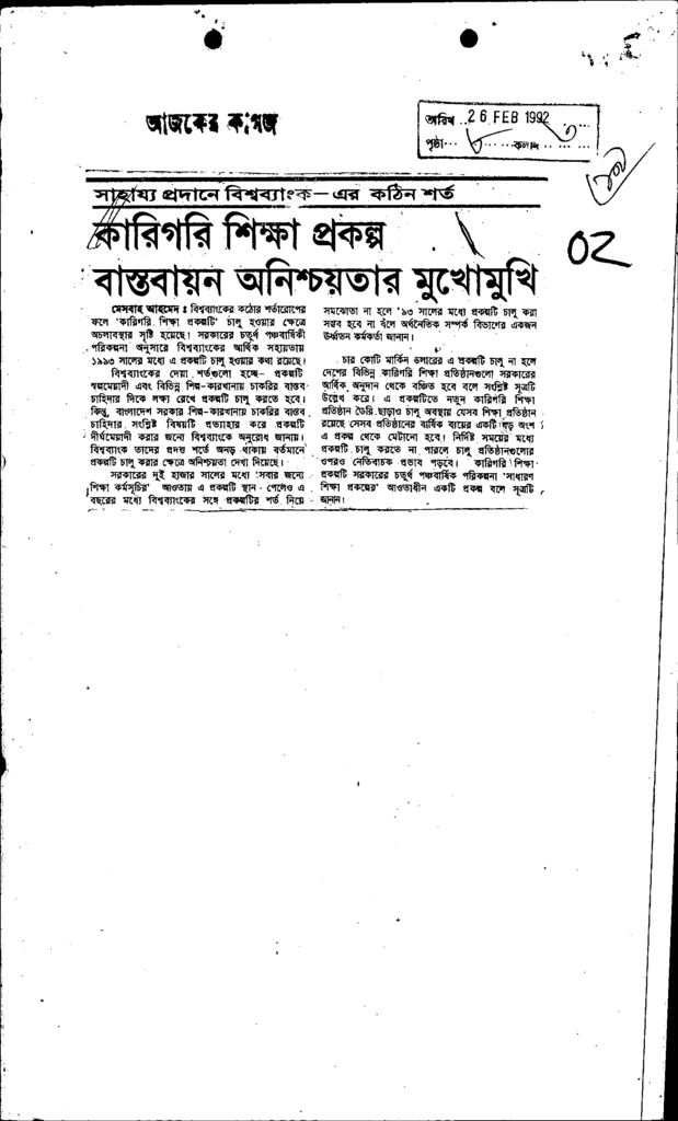 কারিগরি শিক্ষা প্রকল্প বাস্তবায়ণ অনিশ্চয়তার মুখোমুখি Published on Newspaper দৈনিক আজকের কাগজ Category Technical and Vocational Education Download