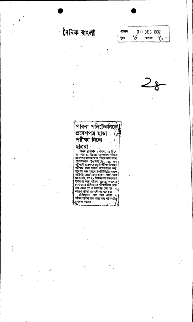 পাবনা পলিটেকনিকে প্রবেশপথ ছাড়া পরীক্ষা দিচ্ছে ছাত্ররা Published on Newspaper দৈনিক বাংলা Category Technical and Vocational Education Download