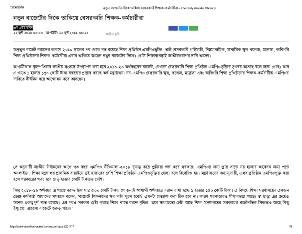 নতুন বাজেটের দিকে তাকিয়ে বেসরকারি শিক্ষক-কর্মচারীরা – The Daily Amader Shomoy Published on Newspaper দৈনিক আমাদের সময় Category Educational Ministry / Departments Download