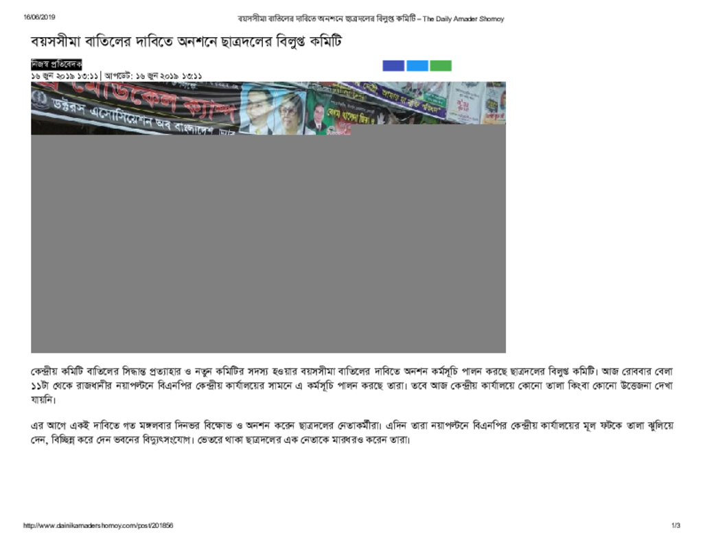 বয়সসীমা বাতিলের দাবিতে অনশনে ছাত্রদলের বিলুপ্ত কমিটি – The Daily Amader Shomoy Published on Newspaper দৈনিক আমাদের সময় Category Student Politics Download