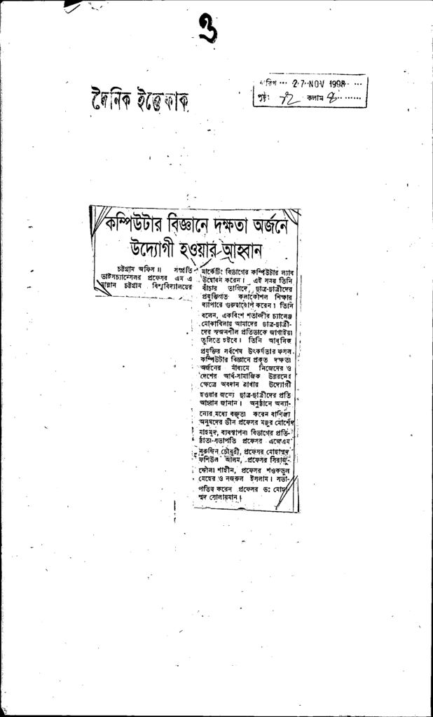কম্পিউটার বিজ্ঞানে দক্ষতা অর্জনে উদ্যোগী হওয়ার আহবান Published on Newspaper দৈনিক ইত্তেফাক Category ICT Education Download