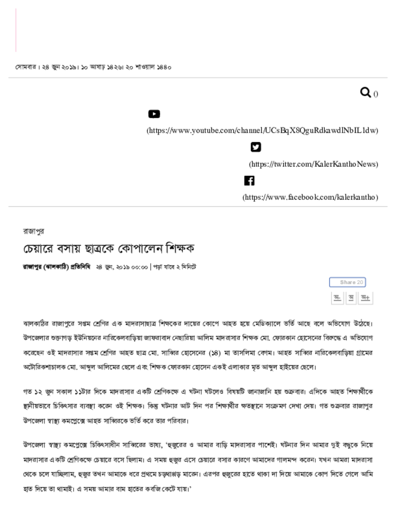 চেয়ারে বসায় ছাত্রকে কোপালেন শিক্ষক