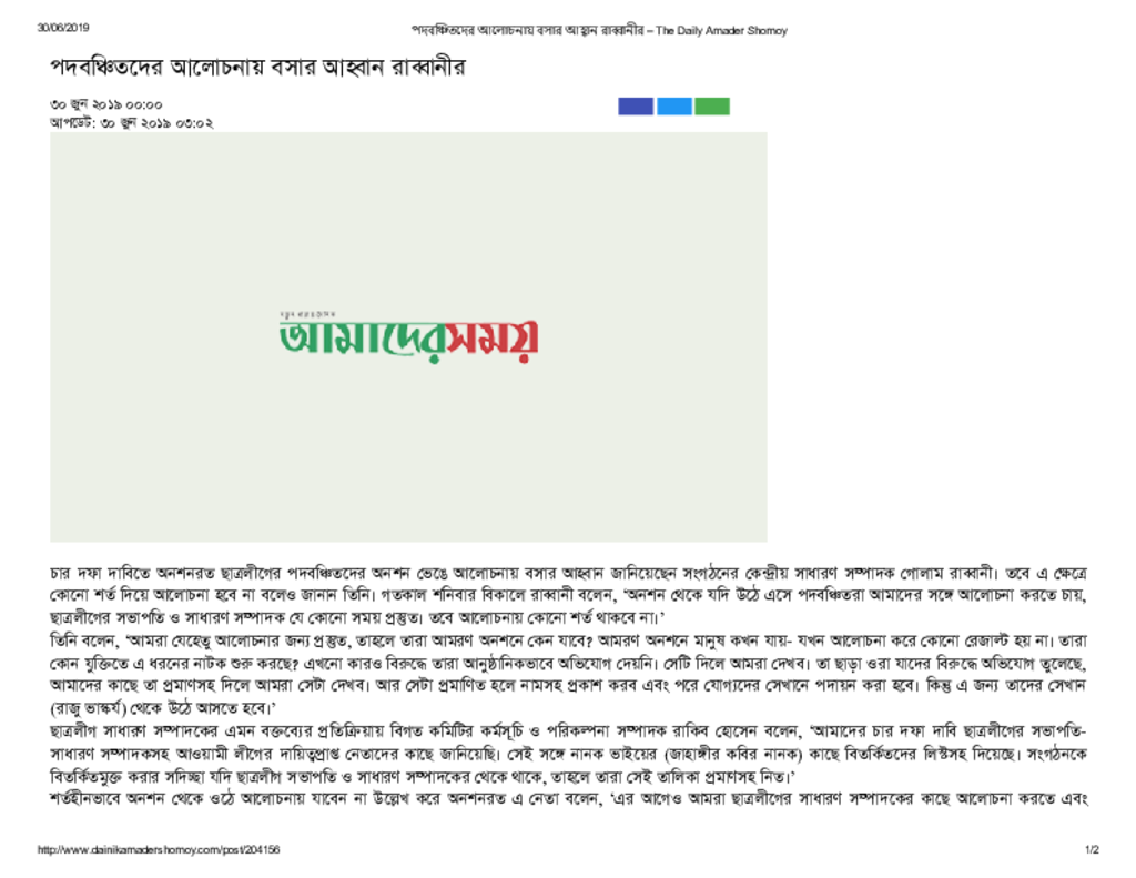 পদবঞ্চিতদের আলোচনায় বসার আহ্বান রাব্বানীর – The Daily Amader Shomoy Published on Newspaper দৈনিক আমাদের সময় Category Student Politics Download