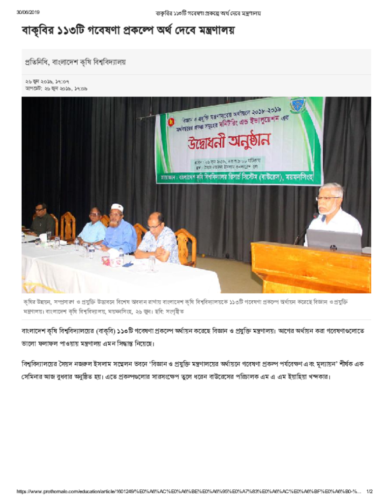 বাকৃবির ১১৩টি গবেষণা প্রকল্পে অর্থ দেবে মন্ত্রণালয় Published on Newspaper দৈনিক প্রথম আলো Category Professional Education Professional Education Others Download