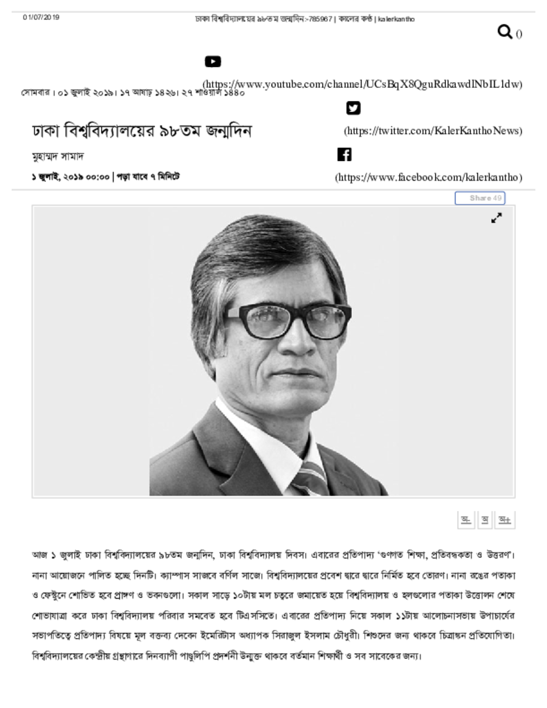 ঢাকা বিশ্ববিদ্যালয়ের ৯৮তম জন্মদিন Published on Newspaper দৈনিক কক্সবাজার Category General Education General Education Higher Education Public Download