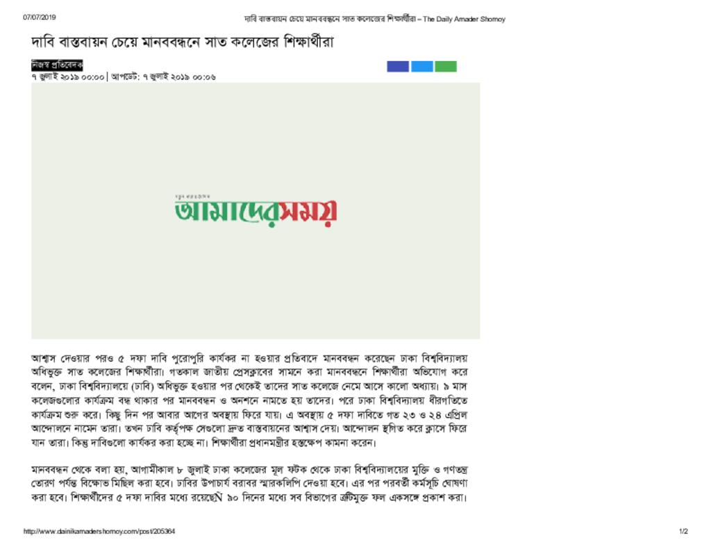 দাবি বাস্তবায়ন চেয়ে মানববন্ধনে সাত কলেজের শিক্ষার্থীরা – The Daily Amader Shomoy Published on Newspaper দৈনিক আমাদের সময় Category General Education General Education Higher Education Public Download