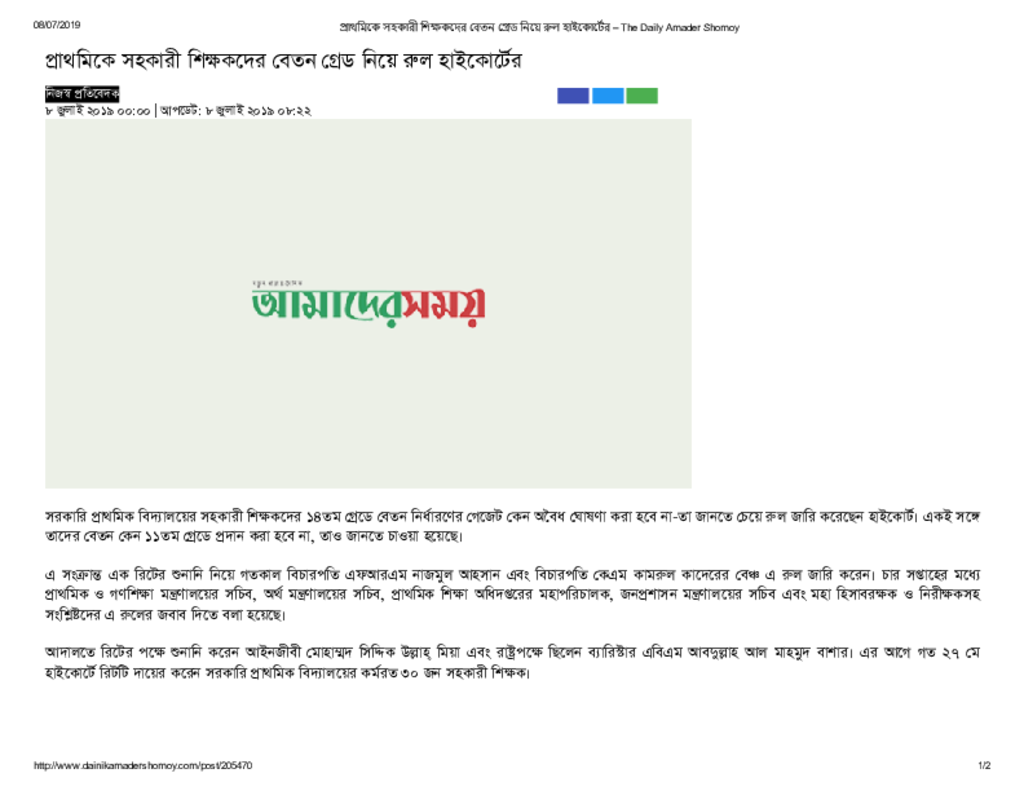 প্রাথমিকে সহকারী শিক্ষকদের বেতন গ্রেড নিয়ে রুল হাইকোর্টের – The Daily Amader Shomoy Published on Newspaper দৈনিক আমাদের সময় Category Educational Ministry / Departments Education Ministry / Division / Directorate Download