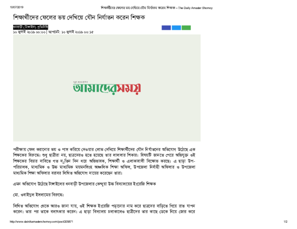 শিক্ষার্থীদের ফেলের ভয় দেখিয়ে যৌন নির্যাতন করেন শিক্ষক – The Daily Amader Shomoy