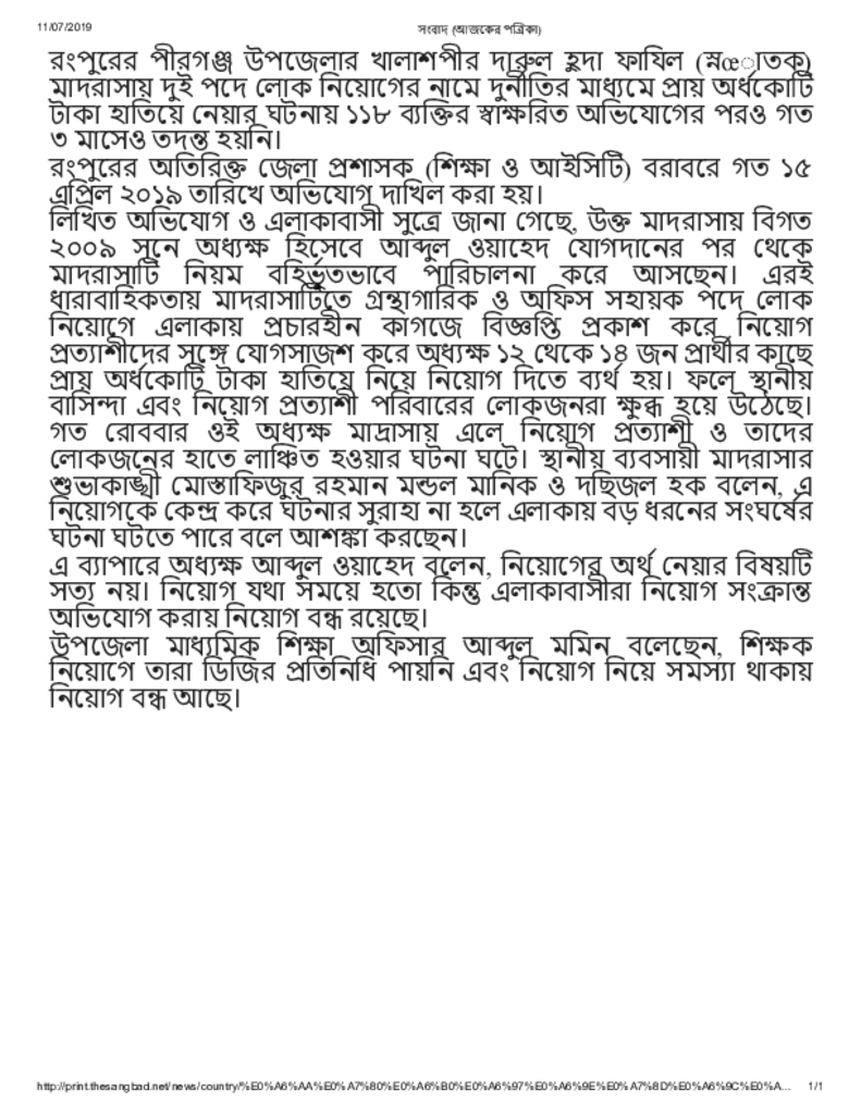 পীরগঞ্জে অধ্যক্ষের দুর্নীতির তদন্ত ৩ মাসেও হয়নি Published on Newspaper দৈনিক সংবাদ Category Madrasah Education Madrasah Education Alia Download
