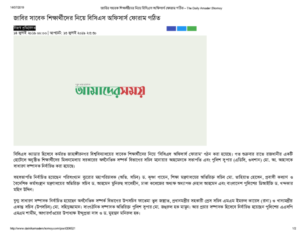 জাবির সাবেক শিক্ষার্থীদের নিয়ে বিসিএস অফিসার্স ফোরাম গঠিত – The Daily Amader Shomoy Published on Newspaper দৈনিক আমাদের সময় Category Others Download