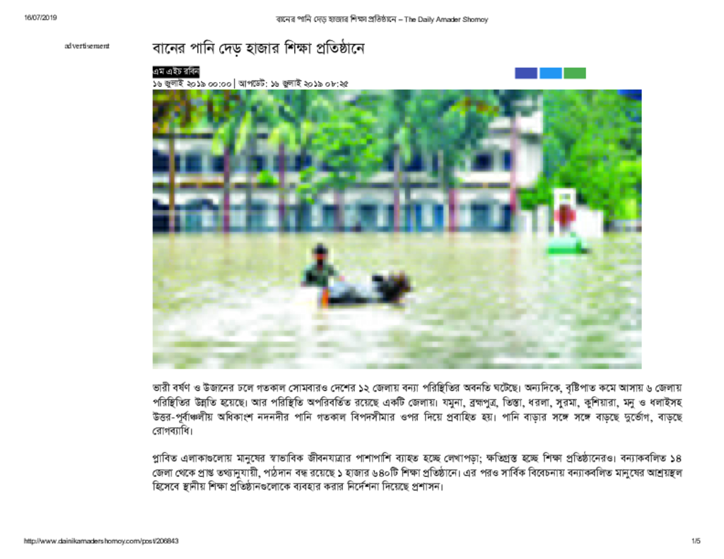 বানের পানি দেড় হাজার শিক্ষা প্রতিষ্ঠানে – The Daily Amader Shomoy
