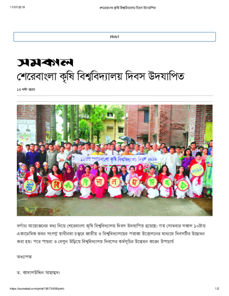 শেরেবাংলা কৃষি বিশ্ববিদ্যালয় দিবস উদযাপিত Published on Newspaper দৈনিক সমকাল Category Science Education Download