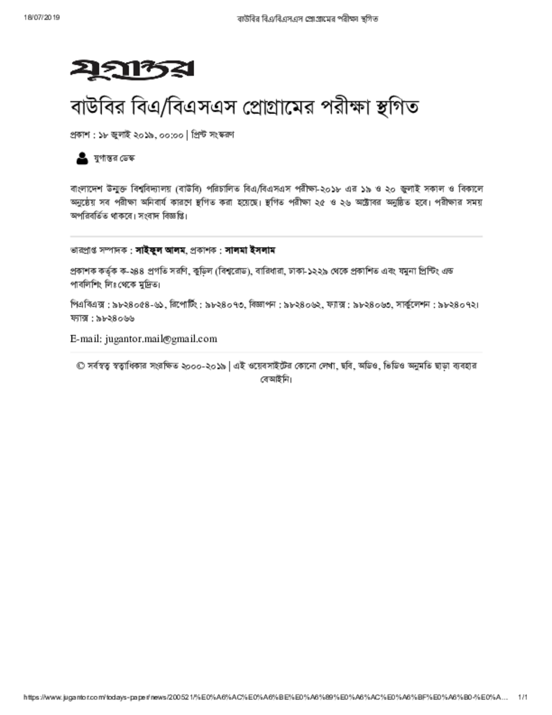 বাউবির বিএ_বিএসএস প্রোগ্রামের পরীক্ষা স্থগিত