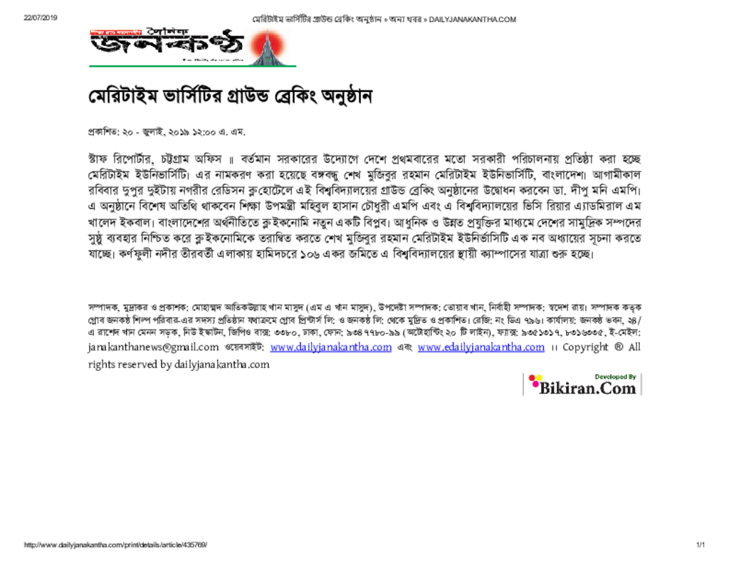 মেরিটাইম ভার্সিটির গ্রাউন্ড ব্রেকিং অনুষ্ঠান » অন্য খবর » DAILYJANAKANTHA Published on Newspaper দৈনিক জনকণ্ঠ Category Professional Education Professional Education Others Download