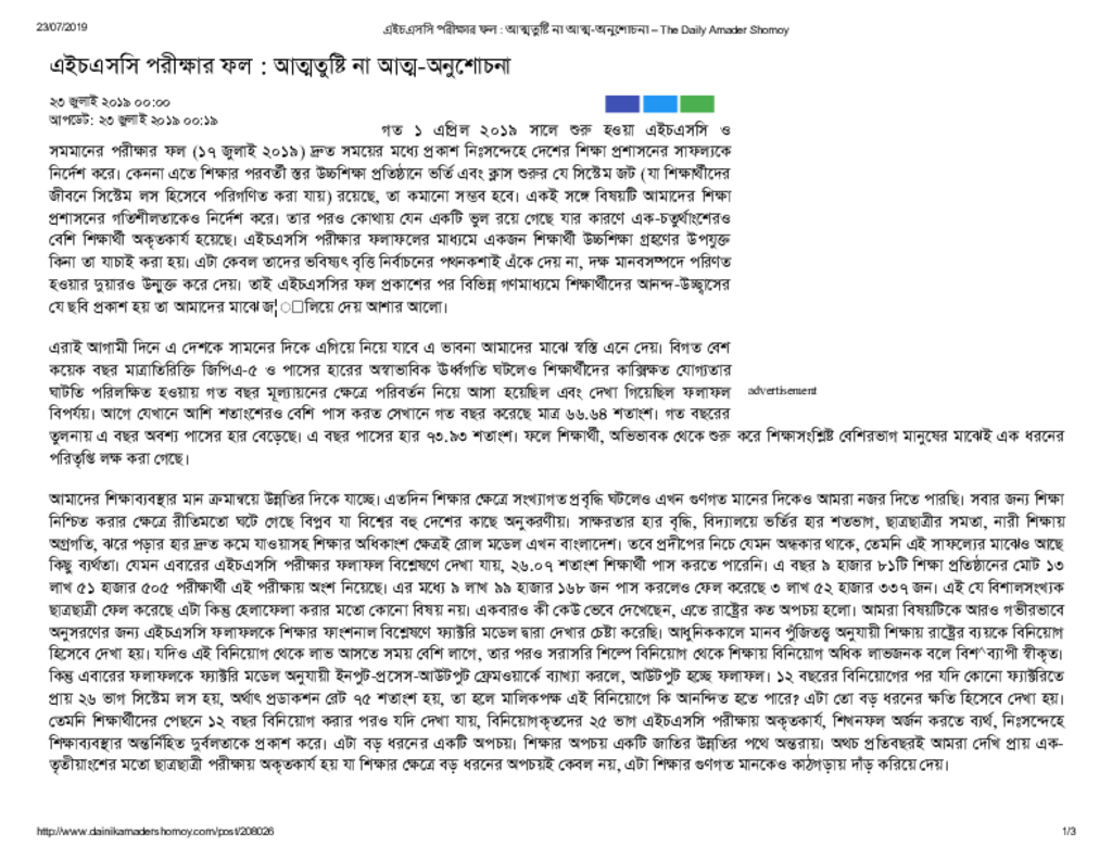 এইচএসসি পরীক্ষার ফল _ আত্মতুষ্টি না আত্ম-অনুশোচনা – The Daily Amader Shomoy Published on Newspaper দৈনিক আমাদের সময় Category Personal Opinion / Discussion / Commentary Download