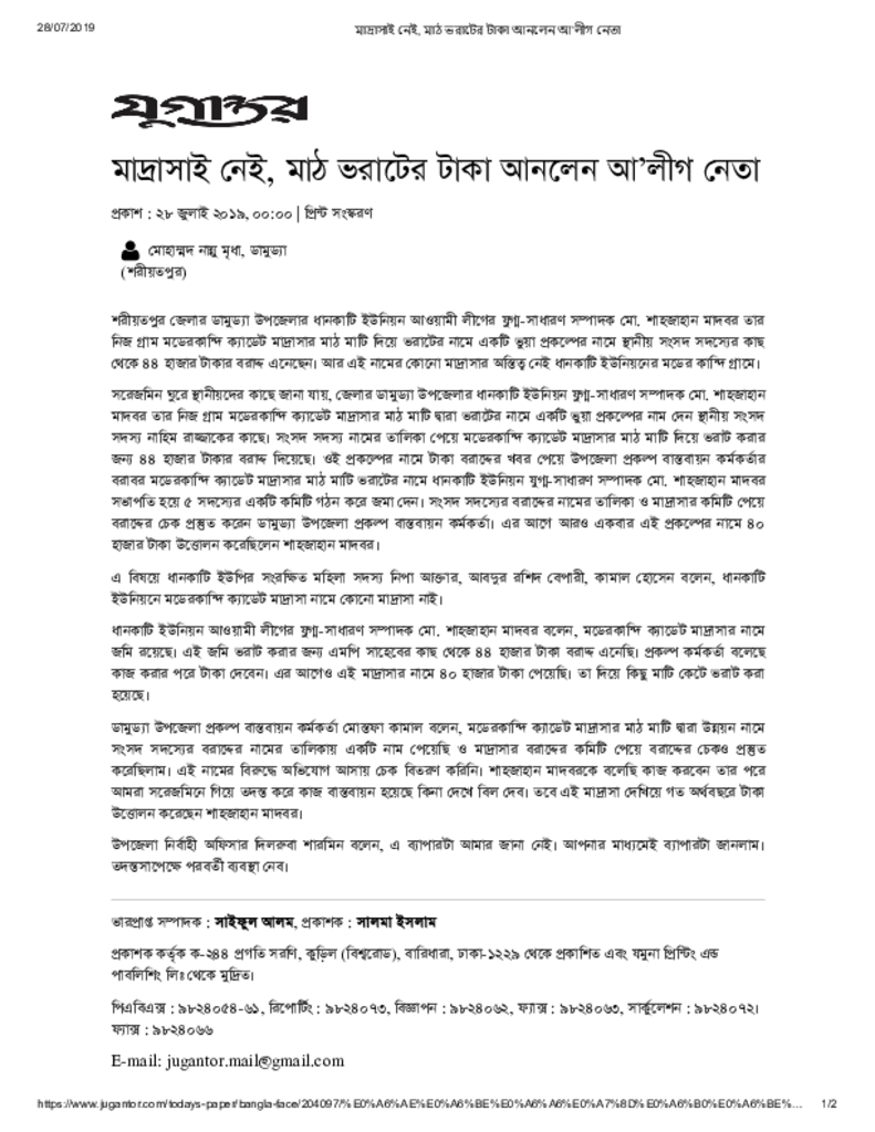 মাদ্রাসাই নেই, মাঠ ভরাটের টাকা আনলেন আ’লীগ নেতা Published on Newspaper দৈনিক যুগান্তর Category Madrasah Education Download