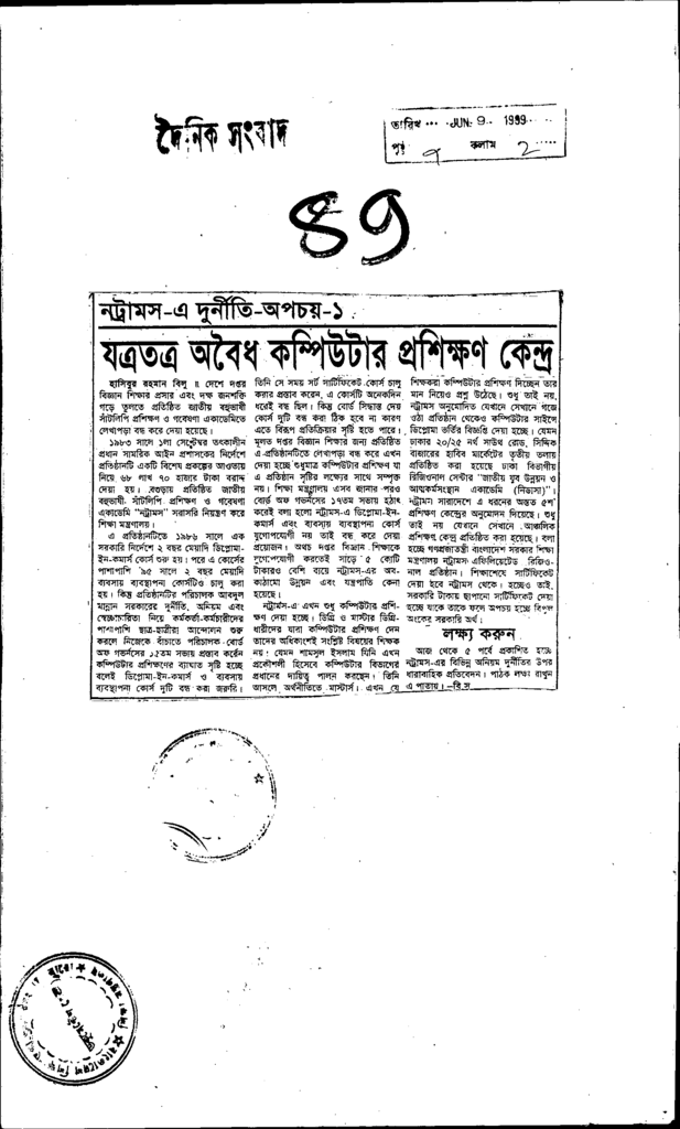 যত্রতত্র অবৈধ কম্পিউটার প্রশিক্ষণ কেন্দ্র Published on Newspaper দৈনিক সংবাদ Category ICT Education Download