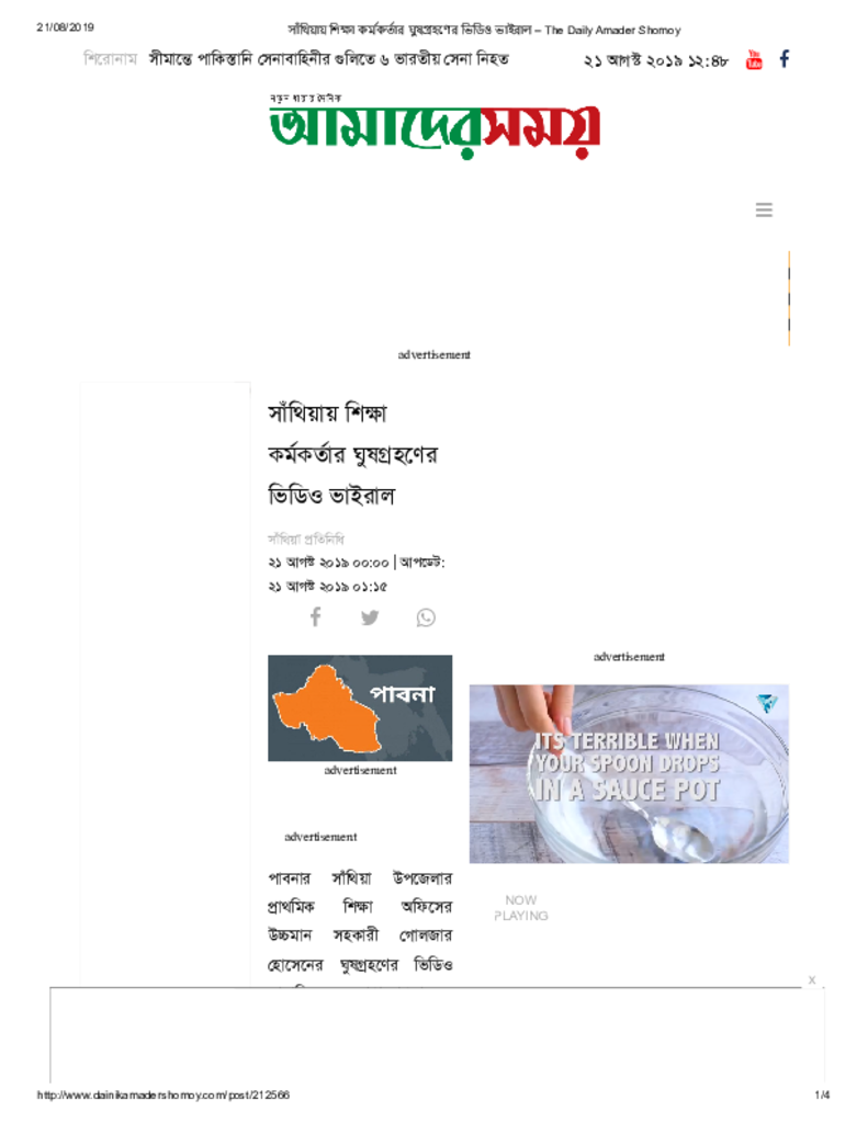 সাঁথিয়ায় শিক্ষা কর্মকর্তার ঘুষগ্রহণের ভিডিও ভাইরাল Published on Newspaper দৈনিক আমাদের সময় Category Others Download