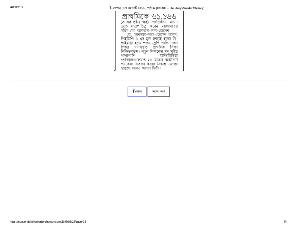 প্রাথমিকে ৬১,১৬৬ শিক্ষকের পদ সৃষ্টি হচ্ছে ২য় অংশ Published on Newspaper দৈনিক আমাদের সময় Category Educational Ministry / Departments Education Ministry / Division / Directorate Download