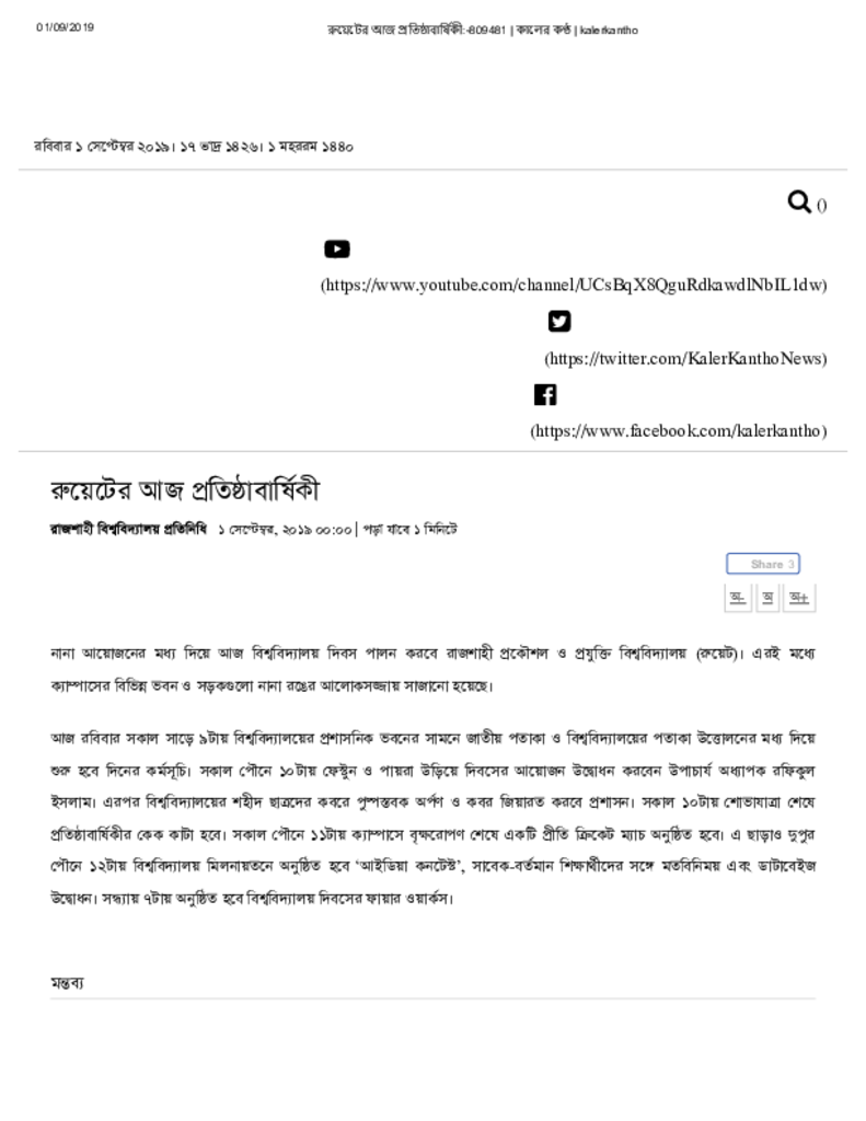 রুয়েটের আজ প্রতিষ্ঠাবার্ষিকী Published on Newspaper দৈনিক কালের কন্ঠ Category Professional Education Professional Education Engineering Download