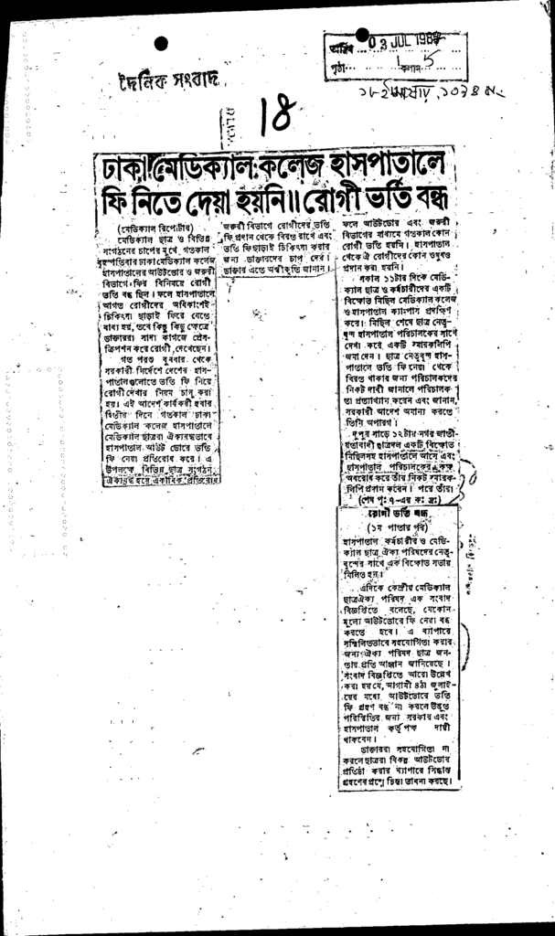 ঢাকা মেডিক্যাল কলেজ হাসপাতালে ফি নিতে দেয়া হয়নি ।। রোগী ভর্তি বন্ধ Published on Newspaper দৈনিক সংবাদ Category Professional Education Professional Education Medical Download